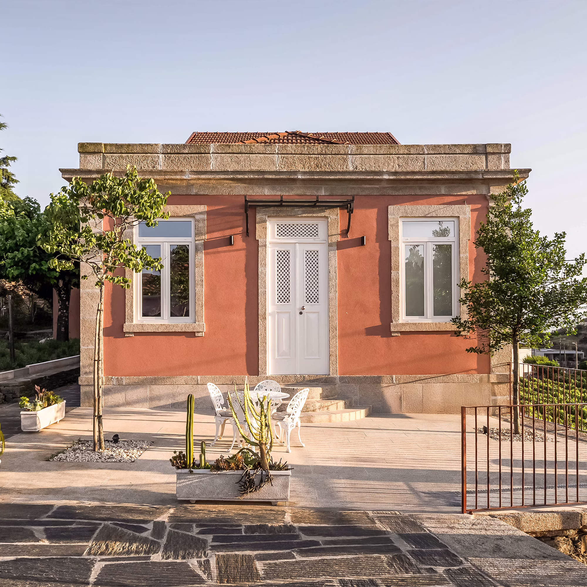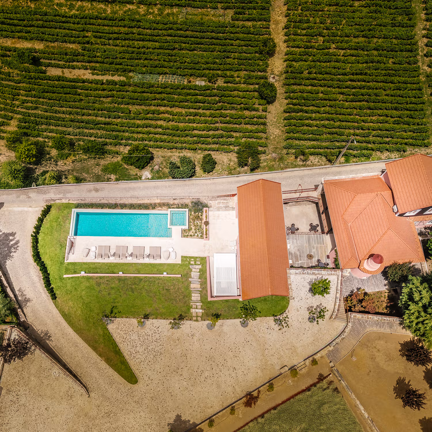 O complexo dispõe de piscina infinita com vista para as vinhas, jardins, terraços e áreas comuns, perfeitos para relaxar, conviver e desfrutar da paisagem duriense. Cada casa mantém privacidade, mas os hóspedes têm acesso às zonas exteriores compartilhadas.